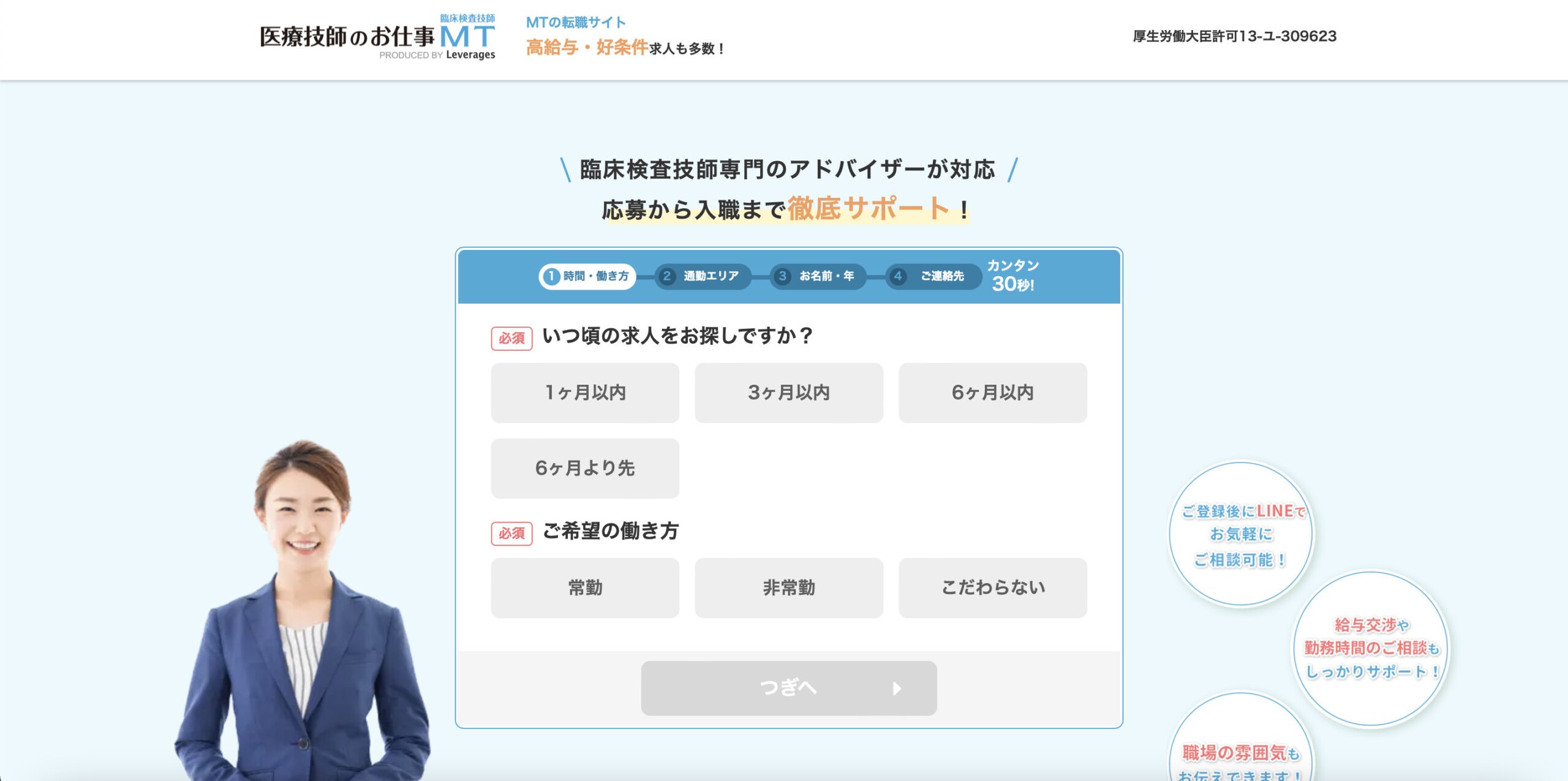 レバウェル医療技師(MT)は、臨床検査技師専門の転職サービスです。